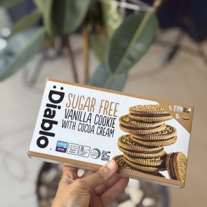 بیسکوئیت کرمدار وانیلی با لایه شکلاتی بدون قند DIABLO
