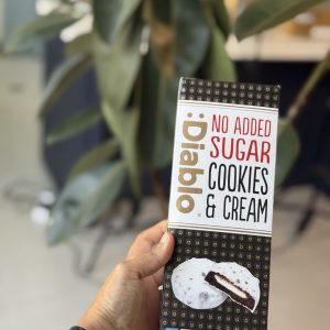 کوکی شکلاتی با مغز کرم شیری و روکش شکلات سفید بدون قند DIABLO