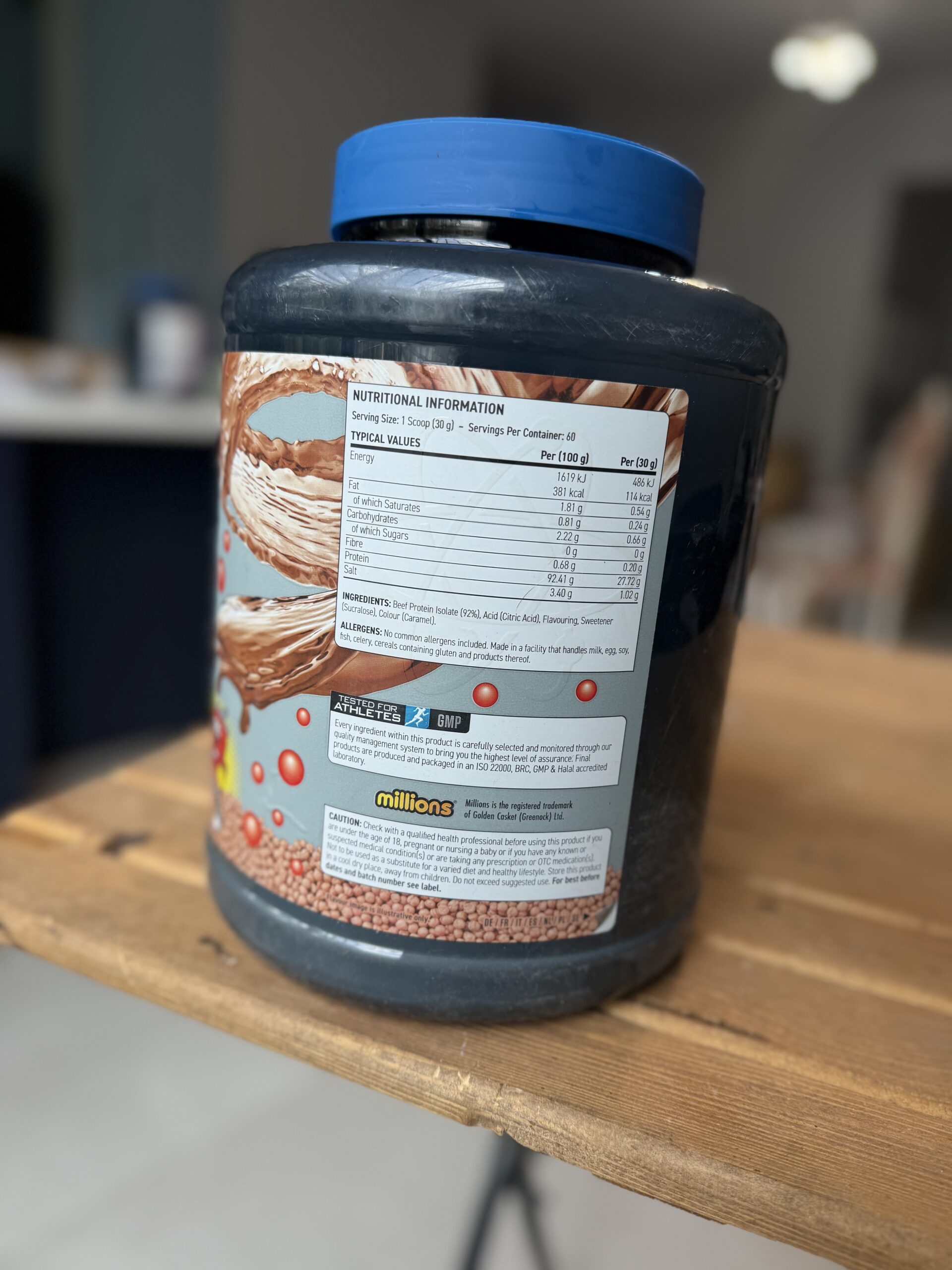 در هر سروینگ 30 گرم : 27.7 گرم پروتئین ، چربی 0.5 گرم ، شکر 0