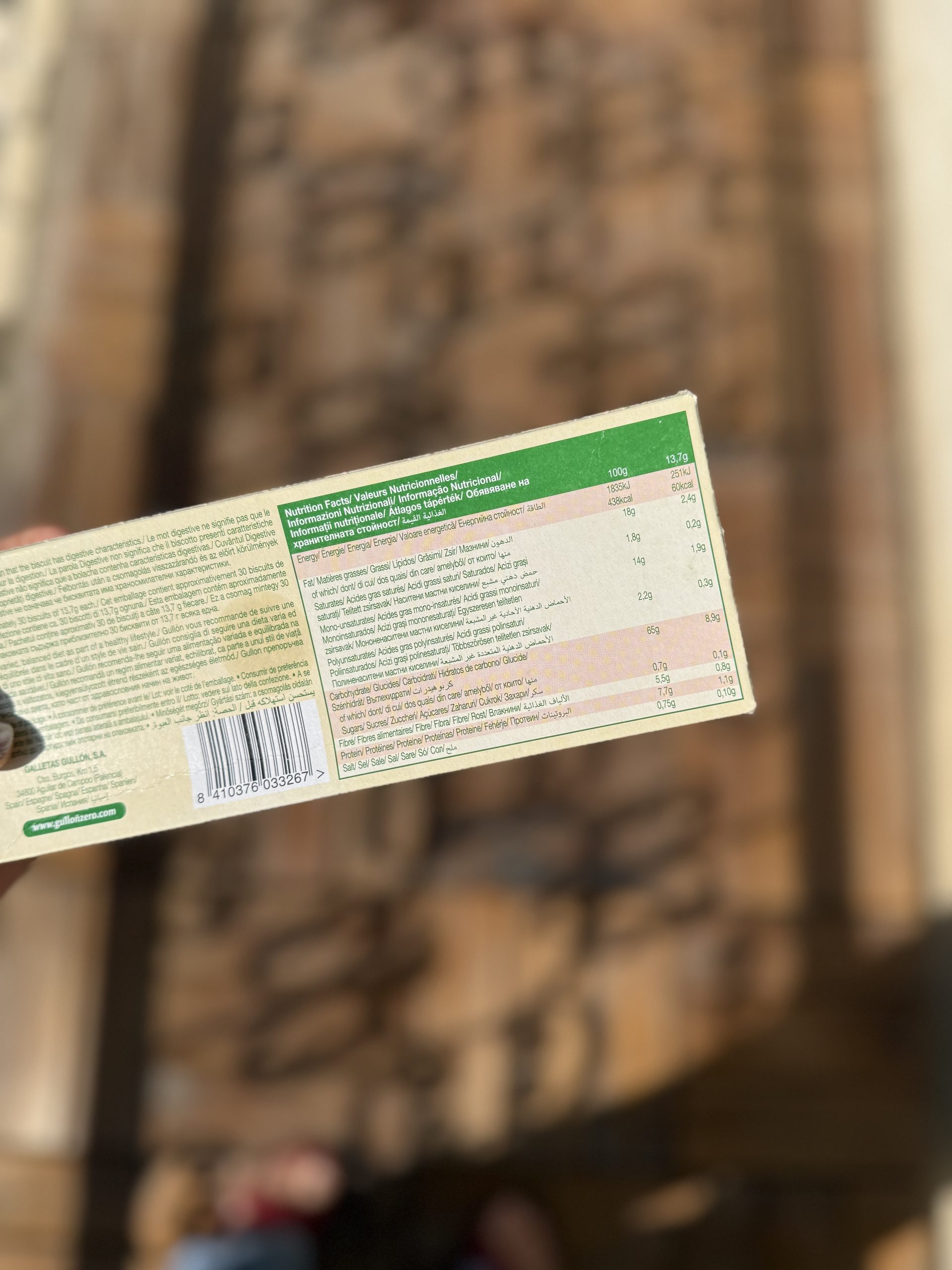 هر عدد بیسکوئیت 13.7 گرم / 60 کالری / 2.4 گرم چربی / کرب 8.9 گرم / شکر افزوده صفر / قند 0.1 گرم