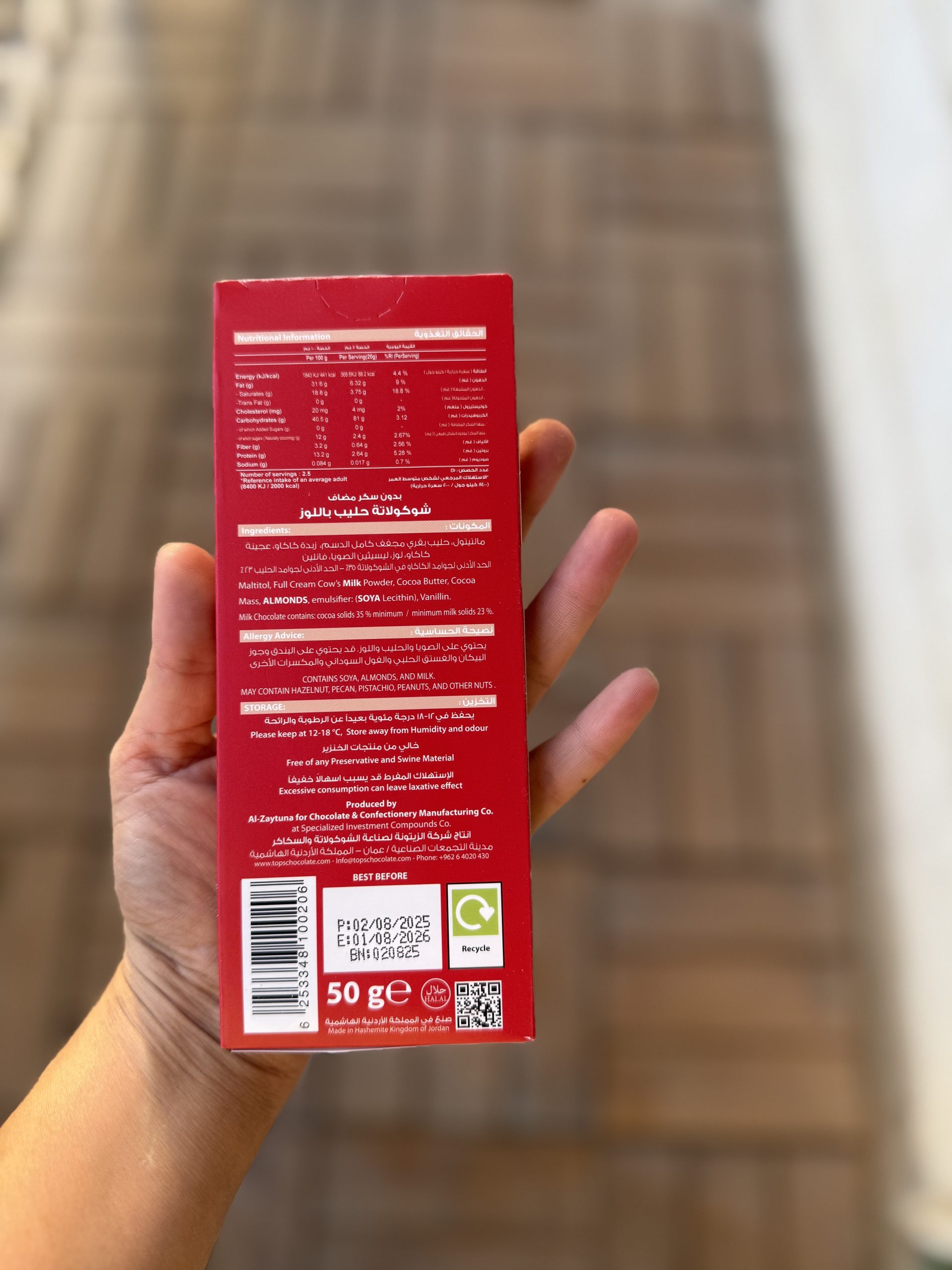شکلات تخته ای بدون شکر شکلات شیری با بادام Tops